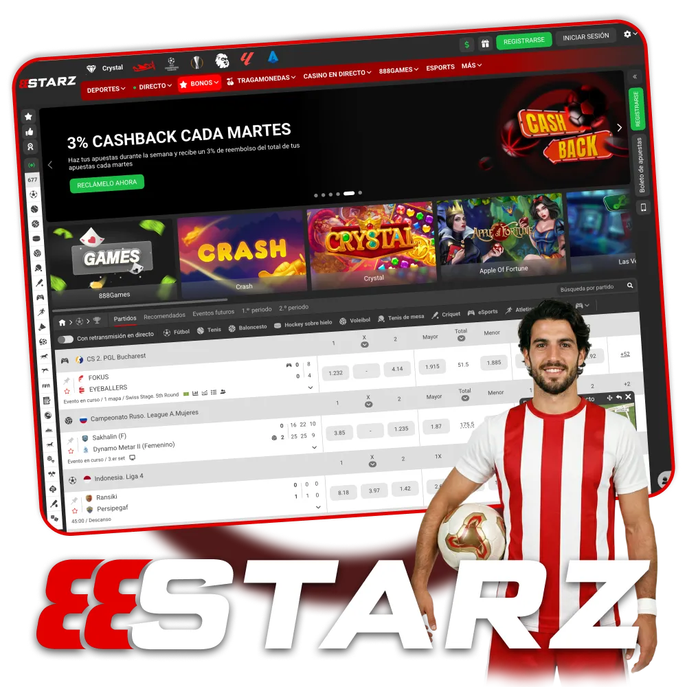 En 2020 llega a España el casino online 888starz, propiedad de Bittech B.V. y legalizado por Curazao. Albergamos más de 10.400 juegos de casino y 35 categorías deportivas para apostar en moneda fiat como EUR o en más de 50 criptos. Para nuestros nuevos usuarios existen 2 bonos de bienvenida; 200% hasta 400 EUR en deportes o hasta 1.500 EUR + 150 FS en el casino por sus 4 primeros depósitos.